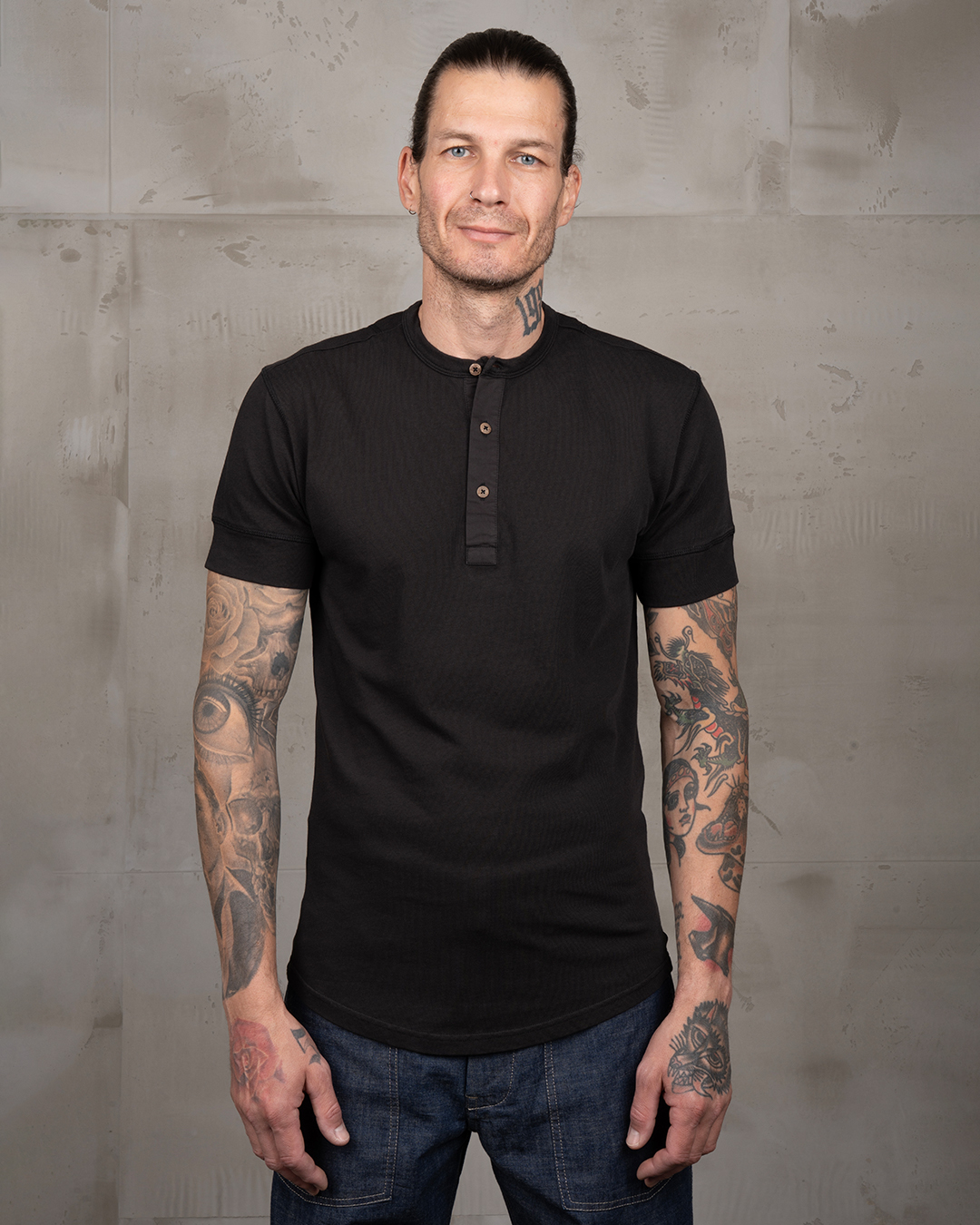 The Pike Brothers 1927 Henley Shirt Short Sleeve Faded Black is the brand’s Henley reference in short sleeve. The 3-button placket brings the authentic character of early 20th century American workwear and sportswear. School of Cool offers this reference for its premium cotton, thoughtful cut and excellent behaviour.
