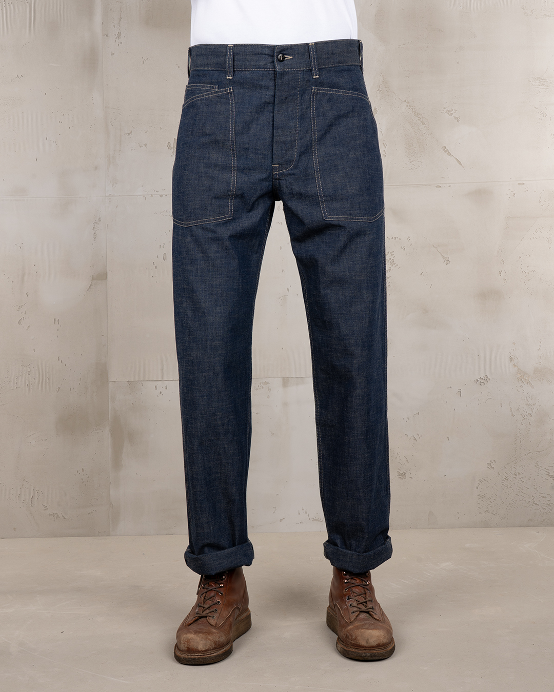 Pike Brothers Pantalon Militaire Denim 1940 Army Denim Indigo est un pantalon denim militaire US Army indigo vintage annees 40, coupe droite. Fabrication europeenne, coton premium. School of Cool, revendeur Pike Brothers Europe.