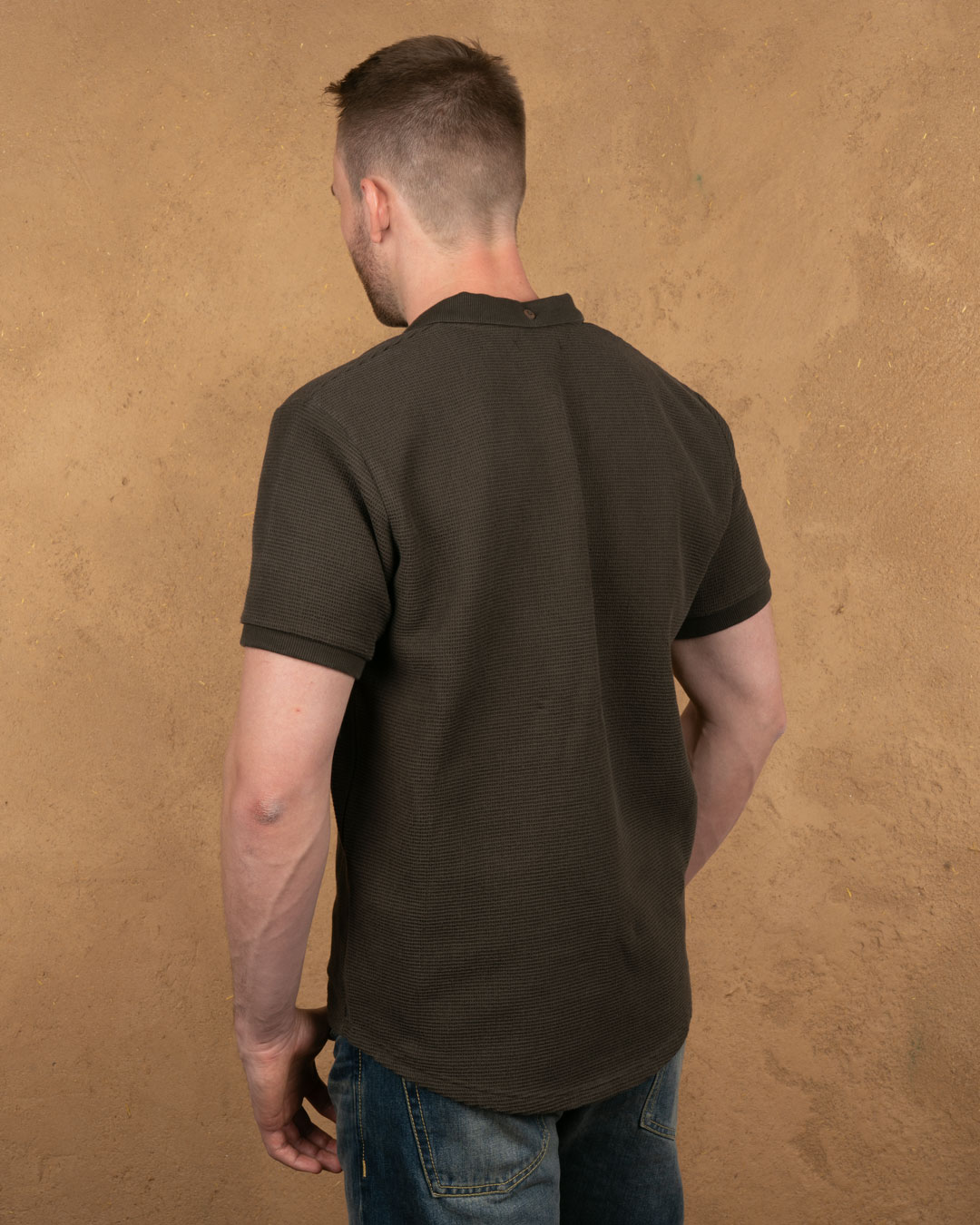 L’olive est une des teintes historiques de Pike Brothers, inspiree des uniformes de l’US Army et des pieces workwear des années 1940-1960. Ce polo vert kaki Pike Brothers se marie naturellement avec un chino beige, un jean brut indigo ou un pantalon cargo. Il se porte aussi bien rentre avec des bretelles qu’ouvert sur un t-shirt blanc. C’est la definition meme d’une piece durable du dressing masculin.